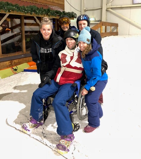 Op zondag 20 januari gingen we naar Snow Fun in Snowplanet, georganiseerd door de Mentelity foundation van Bibian Mentel. Jongeren en jong volwassenen met een lichamelijke beperking maakten deze dag kennis met het skiën of boarden. Jesse wilde hier graag aan meedoen, maar het gaf hem ook een dubbel gevoel. Hij heeft bij Snowplanet gewerkt als snowboard leraar en vond het best confronterend om daar voor het eerst weer te komen en vroegere collega’s te zien. Ik had het er ook best even moeilijk mee en moest een paar keer goed slikken. Bij binnenkomst kwamen al enkele oud collega’s naar hem toe en zelfs de directeur kwam Jesse nog even een handje geven en motiverend toespreken. Uiteindelijk is het Jes meegevallen en heeft hij kunnen genieten van een middag in de sneeuw. Jesse werd begeleid door twee begeleiders van de foundation en door een docent van het Cios die zo lief was om ook te komen. Na eerst twee keer naar boven geduwd te zijn op de oefenheuvel, ging Jesse al een stapje verder. Op de loopband naar boven met de begeleiders. Al met al een super leuke en enerverende middag! Ook hebben we nog even een gesprekje met Bibian kunnen voeren. Respect voor deze vrouw die door het organiseren van dit soort activiteiten haar eigen zorgen even aan de kant kan zetten. En geniet van alle lachende en vrolijke gezichten. Eind maart krijgt dit alles een vervolg en gaat Jesse deelnemen aan snowboard lessen. We hopen dat dit een fijne ervaring voor hem wordt en dat hij hier plezier aan beleeft. Want dat is het belangrijkste!