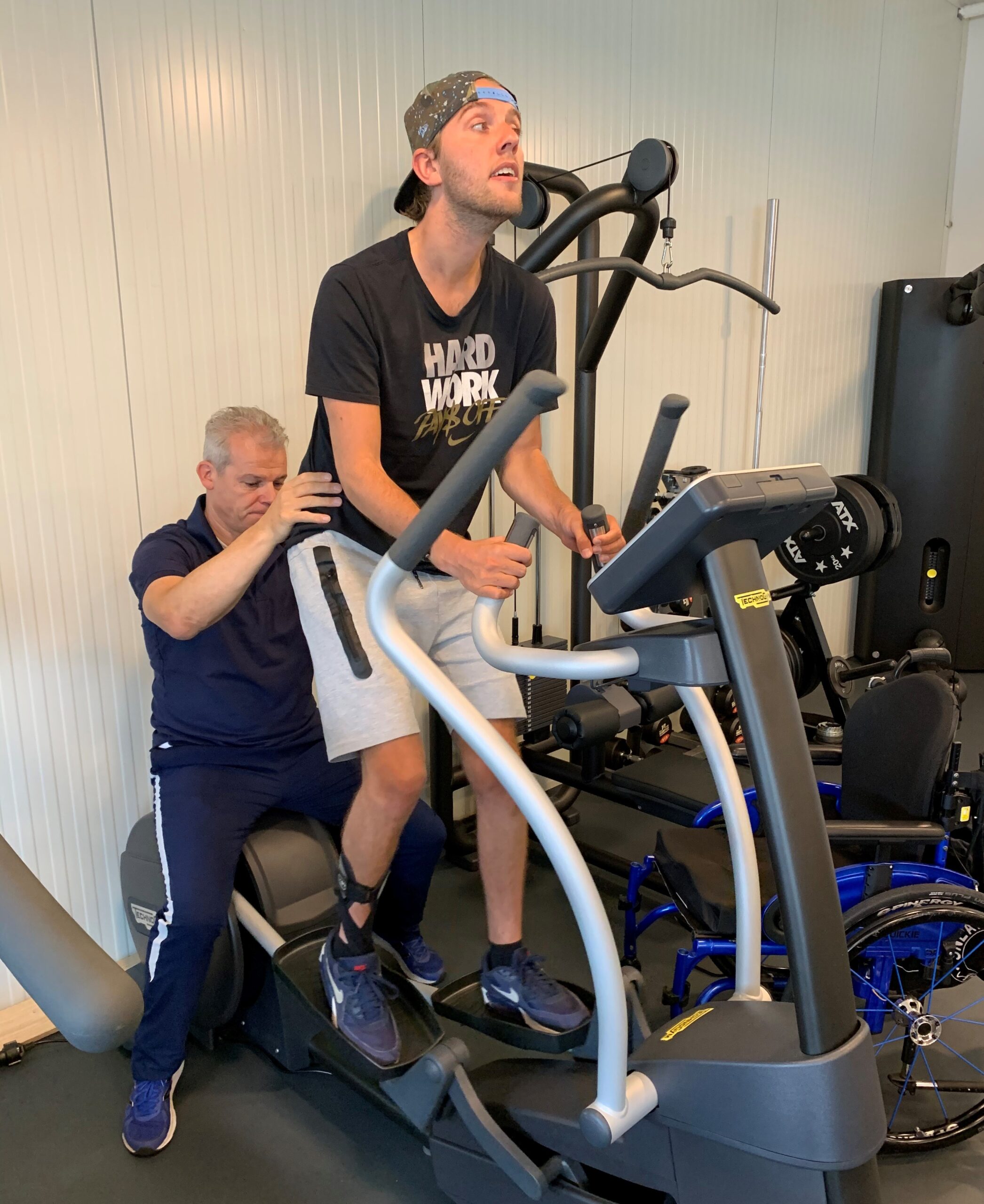 Jesse heeft allerlei fases doorgemaakt. Begonnen in het VU ziekenhuis met 10 weken IC en neurologie, daarna naar het Leijpark in Tilburg voor de VIN therapie om zijn bewustzijn te stimuleren. Wij namen onze intrek in het Ronald Mc Donaldhuis en ik pendelde heen en weer tussen thuis en Tilburg om ook bij dochterlief te kunnen zijn. Na 7 weken “adequaat bewust” verklaard en door naar Heliomare. Hier 6 maanden verbleven maar helaas na 2 maanden overprikkeld geraakt en heeft Jesse geen tot minimale therapieën kunnen volgen. Om de therapieën weer op te bouwen werd Jesse overgebracht naar Huize Padua in Boekel. In deze lastige en heftige omgeving voor Jesse (en ook voor ons), waar veel cliënten zaten met een gedragsstoornis n.a.v NAH, heeft Jesse 6 maanden verder gerevalideerd. Hier is hij heel goed begeleid en zijn de therapieën opgebouwd. Jesse was een fijne client voor de therapeuten, heel goed behandelbaar, geen last van overprikkeling en altijd vrolijk. We hebben die maanden heel wat kilometers afgelegd om dagelijks bij Jesse te kunnen zijn en samen te eten. Zo’n 300 km per dag (en dat 6 maanden lang) is het meer dan waard geweest! Na de periode in Brabant mocht Jesse 6 maanden verder revalideren in Heliomare, gelukkig dichter bij huis.