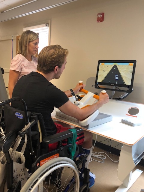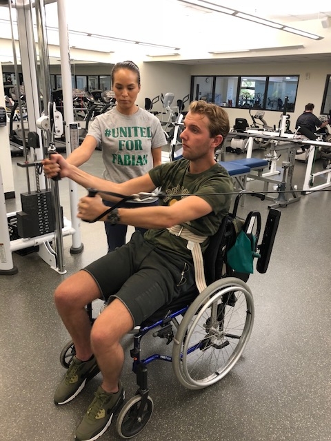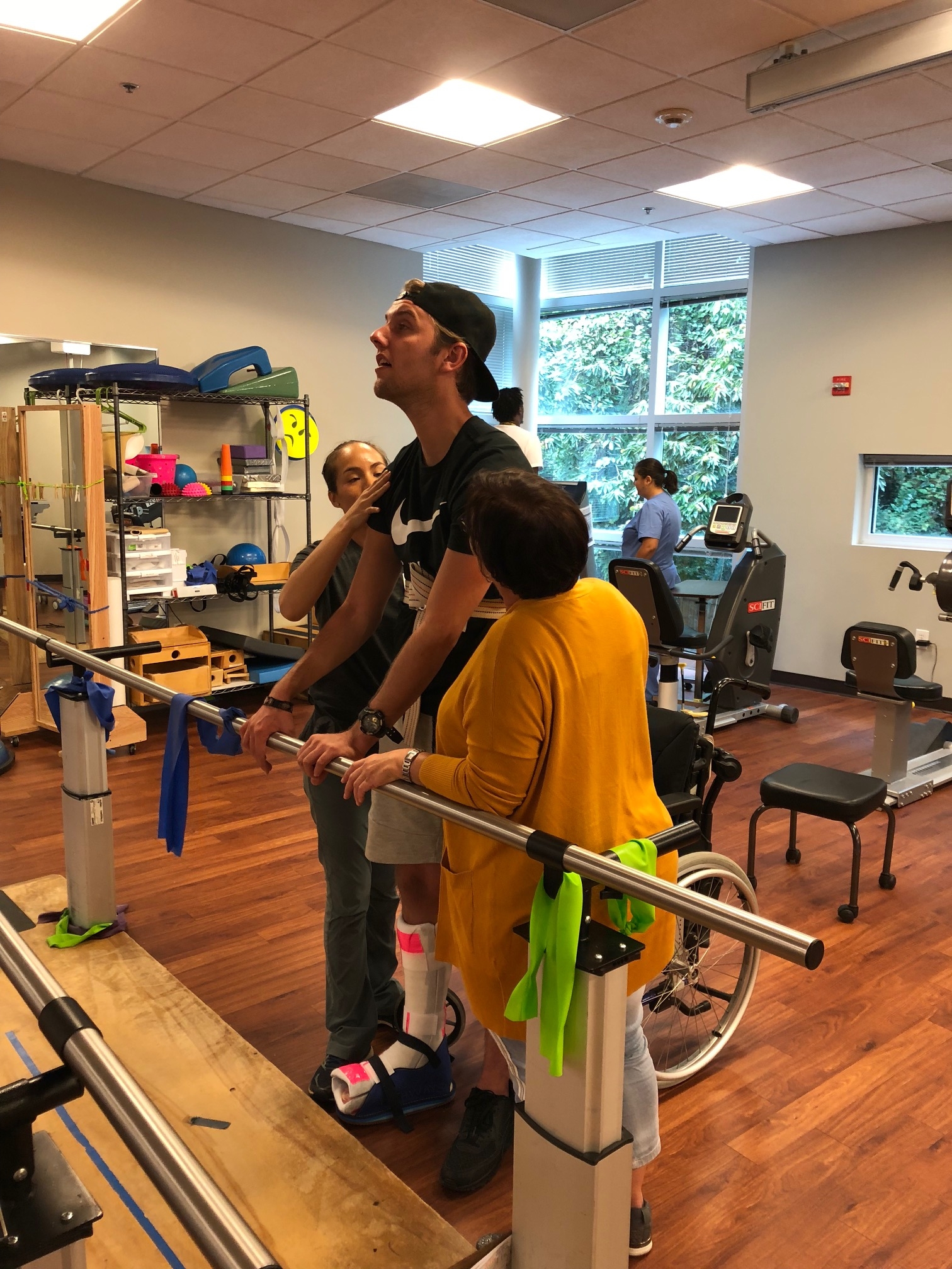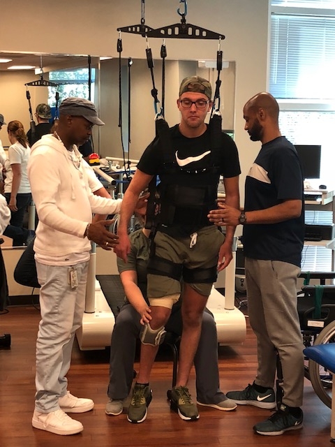 We hebben om 14.00 uur een afspraak in het grote Shepherd Center om uitleg te krijgen over het fitness gedeelte. Jesse gaat daar volgende week starten met de Beyond Therapie. Dit zijn extra therapie uren voor hem, geheel gericht op het fysieke deel. Jesse krijgt hier om te beginnen op maandag en vrijdag twee uur achter elkaar therapie. Schijnt behoorlijk pittig te zijn, hij wordt fysiek nog meer uitgedaagd! De omgeving spreekt hem enorm aan. Een grote sporthal met allerlei apparatuur en daarnaast nog een grote fitnessruimte met heel veel verschillende apparaten. Er hangt een goede sfeer met muziek op de achtergrond en er wordt heel hard gewerkt door revalidanten aan hun herstel.